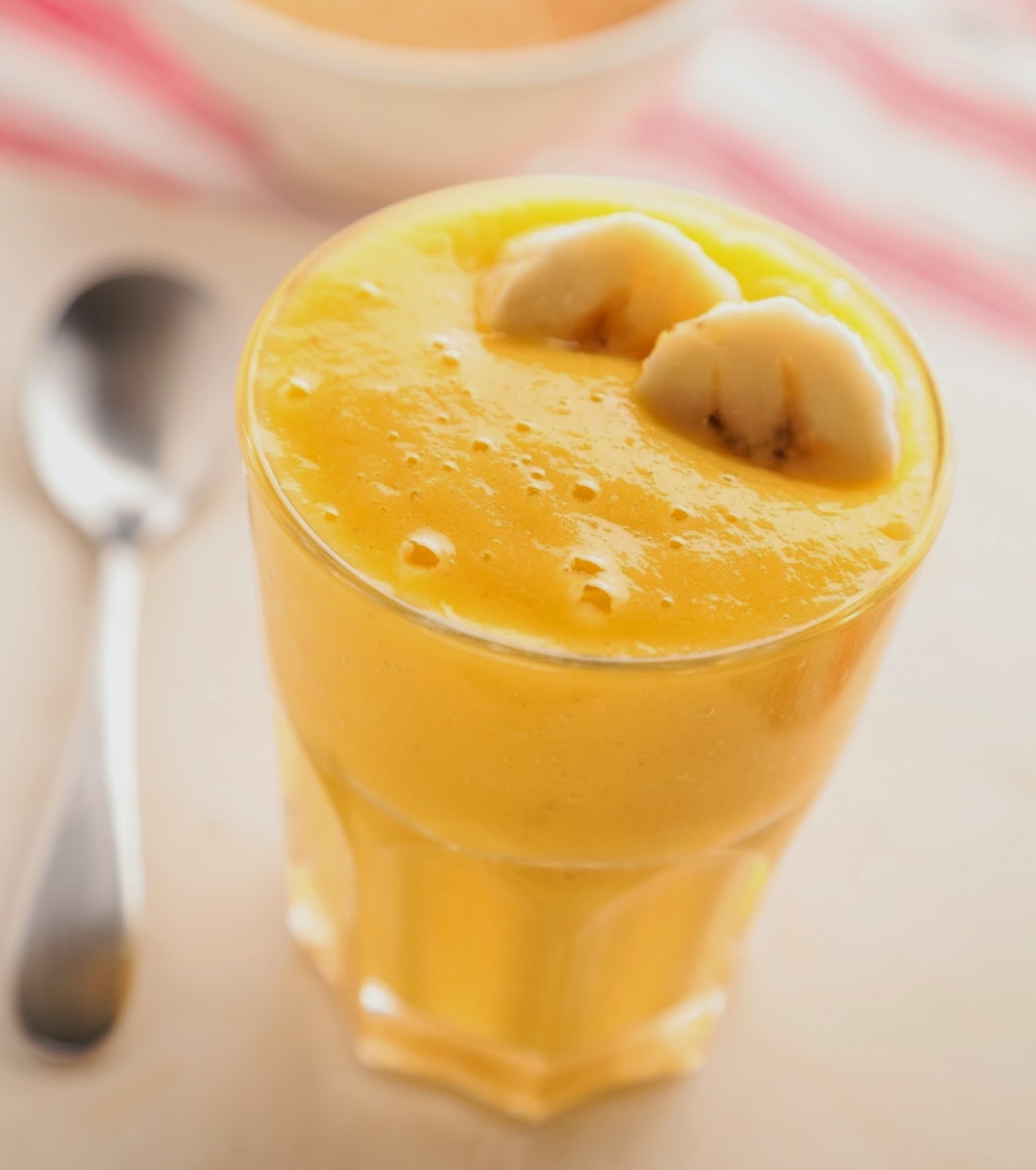 Mélanger les bananes avec de l’eau, le citron et le miel à l’aide d’un batteur électrique et profitez-en.