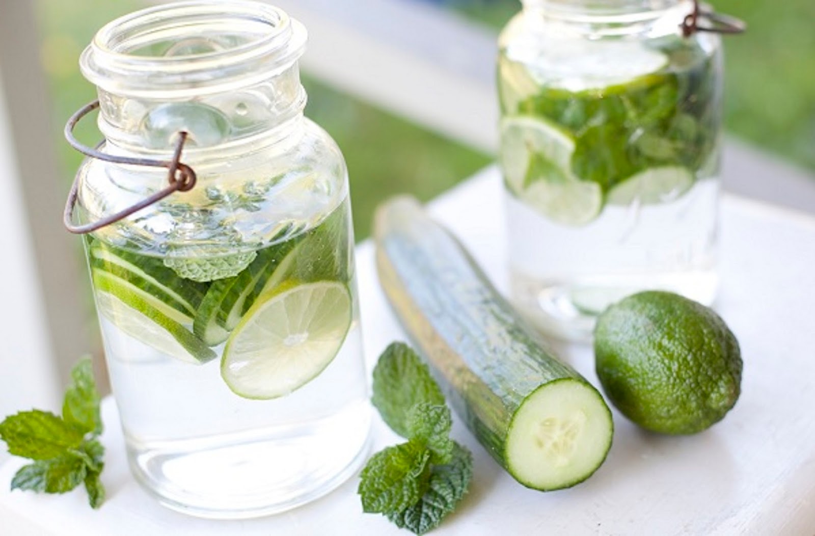 le concombre et le citron et coupez-les en tranches. Après mélangez tous, ajouter les feuilles de menthe.